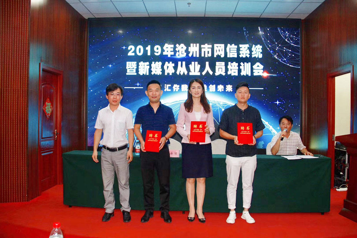 會后,滄州市網(wǎng)絡(luò)媒體協(xié)會會長為總經(jīng)理李霖、王敏律師等三位頒發(fā)了專家聘書。