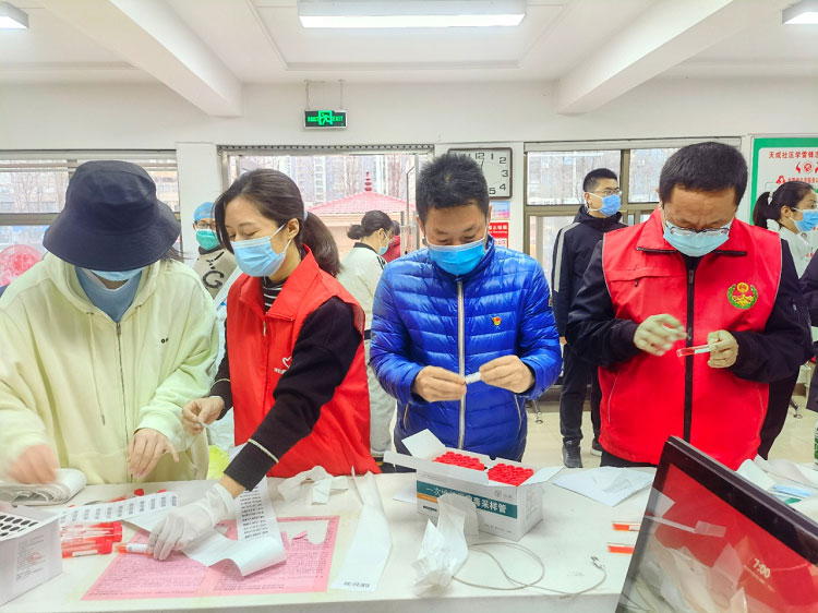 檢測完畢后,大家回到社區(qū)服務(wù)中心,繼續(xù)做各種后續(xù)工作,辛苦的一天經(jīng)常是朝五晚九甚至?xí)円棍閼?zhàn)。