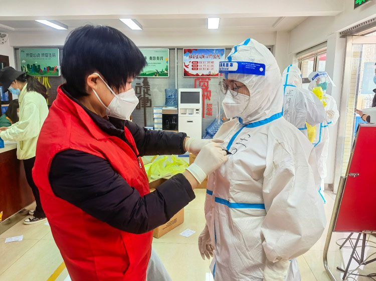 疫情初期每天都是入戶檢測,32層樓,共計200多人的檢測耗時接近一天。每天除了爬樓和不能坐的辛苦外,為了節(jié)省隔離服,大家都是不吃不喝不上廁所,天氣熱的時候全身濕透,天氣冷的時候凍的手都沒有知覺,雖然很辛苦,但大家依然在堅守。